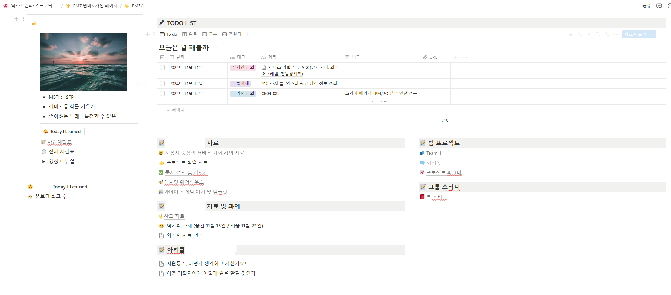 노션으로 배운 내용들을 정리하며 역량을 키워나가고 있다...!