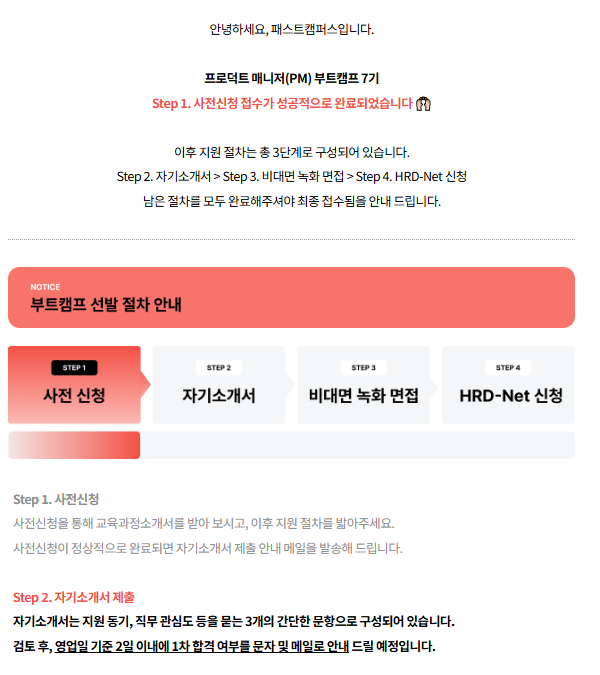 이후 사전 신청이 완료되면 자기소개서 제출 안내 메일이 발송된다.