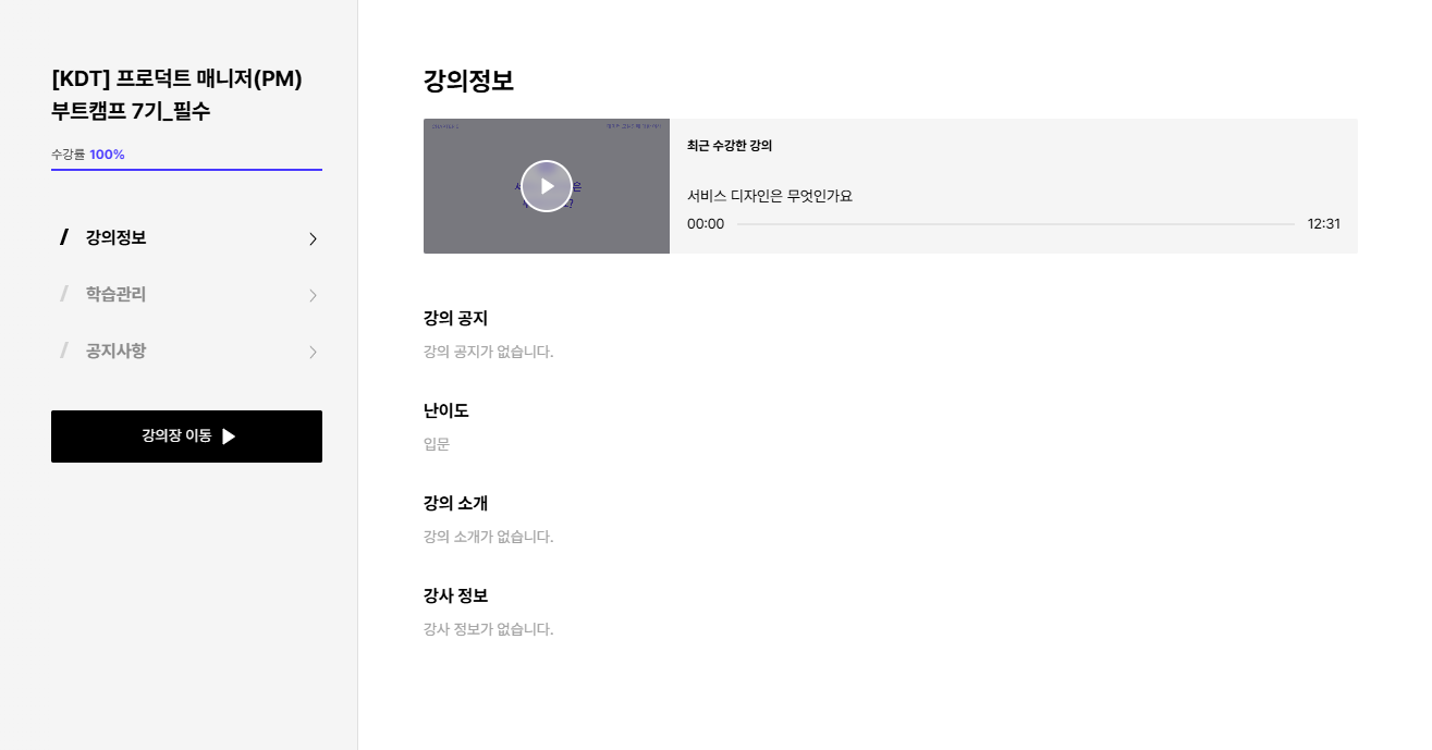 PM 역량을 키우기 위한 자료 등 정말 유익한 강의가 진행된다.