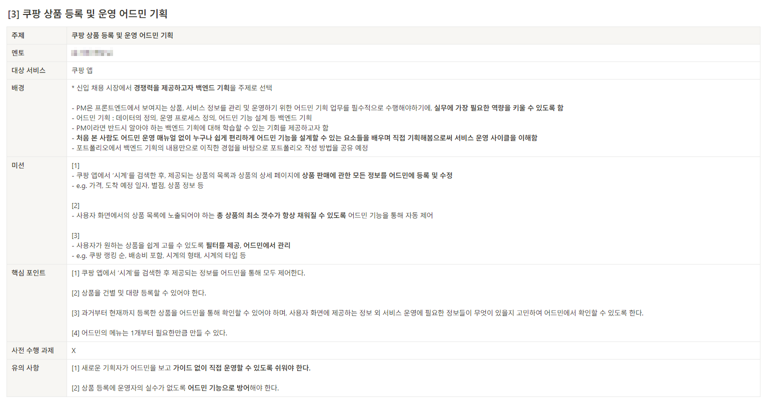 패스트캠퍼스 PM 부트캠프를 통해 프로덕트 매니저라는 직무에 도전한지 벌써 6개월이 지났다!이 글에서는 패스트캠퍼스 PM 부트캠프 7기를 수강하며 느낀 점과 성장한 점을 아래 7가지 질문에 답변하는 형식으로 정리해 보려고 한다. 이 글이 PM 부트캠프에 관심 있는 분들에게 도움이 되기를 바라면서! 1. 왜 다른 부트캠프가 아닌 패스트캠퍼스 부트캠프를 선택했는가? 패스트캠퍼스 PM 부트캠프를 선택한 이유는 이전 작성했던 게시글에서도 말했던 것 같은데일단 가장 큰 이유는 '국비지원' 이 된다는 것이었다.그리고 이미 기획이라는 직무에 관심을 갖기 시작하면서 패스트캠퍼스에서 진행하는 강의 내용에 대해서 흥미가 있는 상태였기도 했다. 한창 교육에 목말라 있을 때 인스타그램에 패캠에서 진행하는 교육 과정에 대한 ..